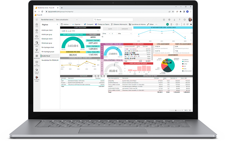 Sergi hace años que nos ayuda a todo el proceso de transformación digital de nuestra asesoría, y hoy en día somos capaces de medir las rentabilidades de todos nuestros clientes y expedientes utilizando Suasor y Power BI.